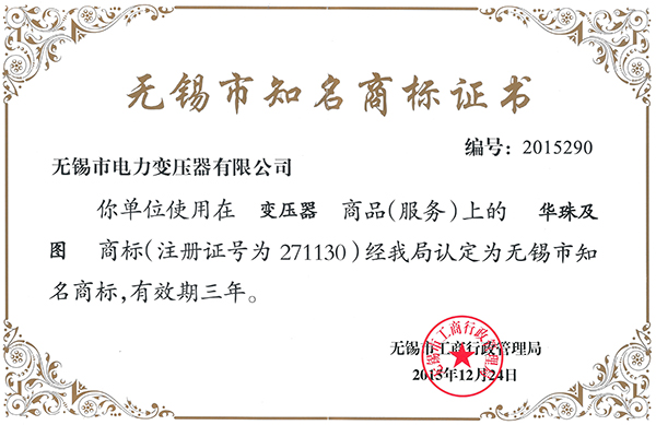 • 無錫市知名商標(biāo)證書16.3.4
